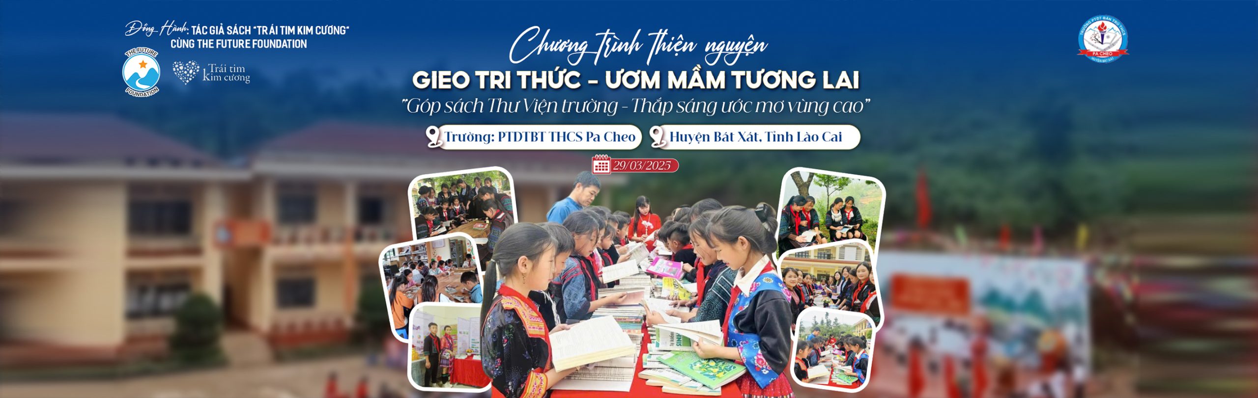 The Future Foundation đang có một dự án ‘GIEO TRI THỨC ƯƠM MẦM TƯƠNG LAI’ để nhờ đó có thể giúp đỡ một phần nho nhỏ tới các em ở Trường PTDTBT THCS Pa Cheo, Lào Cai. Sách không chỉ mang đến tri thức mà còn bồi dưỡng tâm hồn mỗi người đặc biệt là trẻ em, những hạt mầm cần được vun đắp để được lớn lên trọn vẹn. Nhưng không phải đứa trẻ nào cũng có cơ hội chạm vào sách, vì thế tụi mình đã lên ý tưởng thực hiện dự án này.